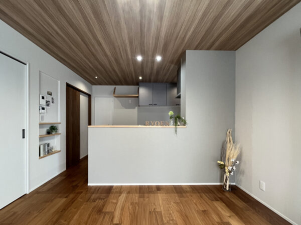 濃紺の外壁に木目の玄関がアクセントになった外観です。 木目天井が美しいLDK。畳スペース、マグネットボード付きのニッチなど、ご家族が快適に過ごすことができるスペースです。 扉で仕切ることができ […]