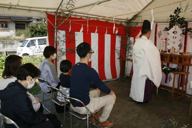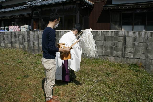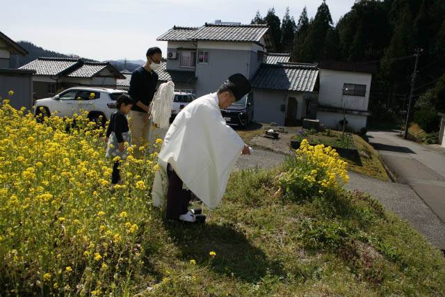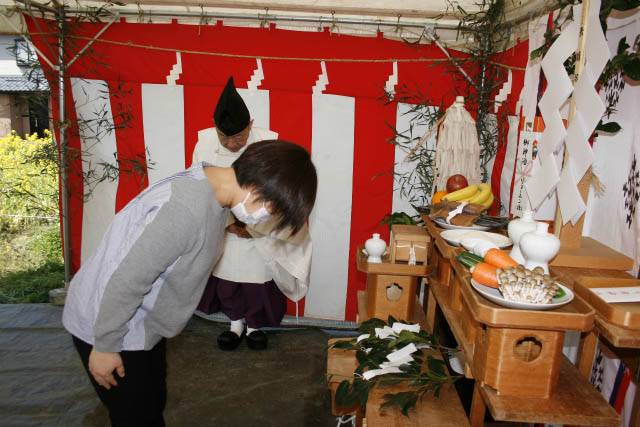 お清めが済むとテントに戻り、この土地に初めて手を入れる儀式をします。