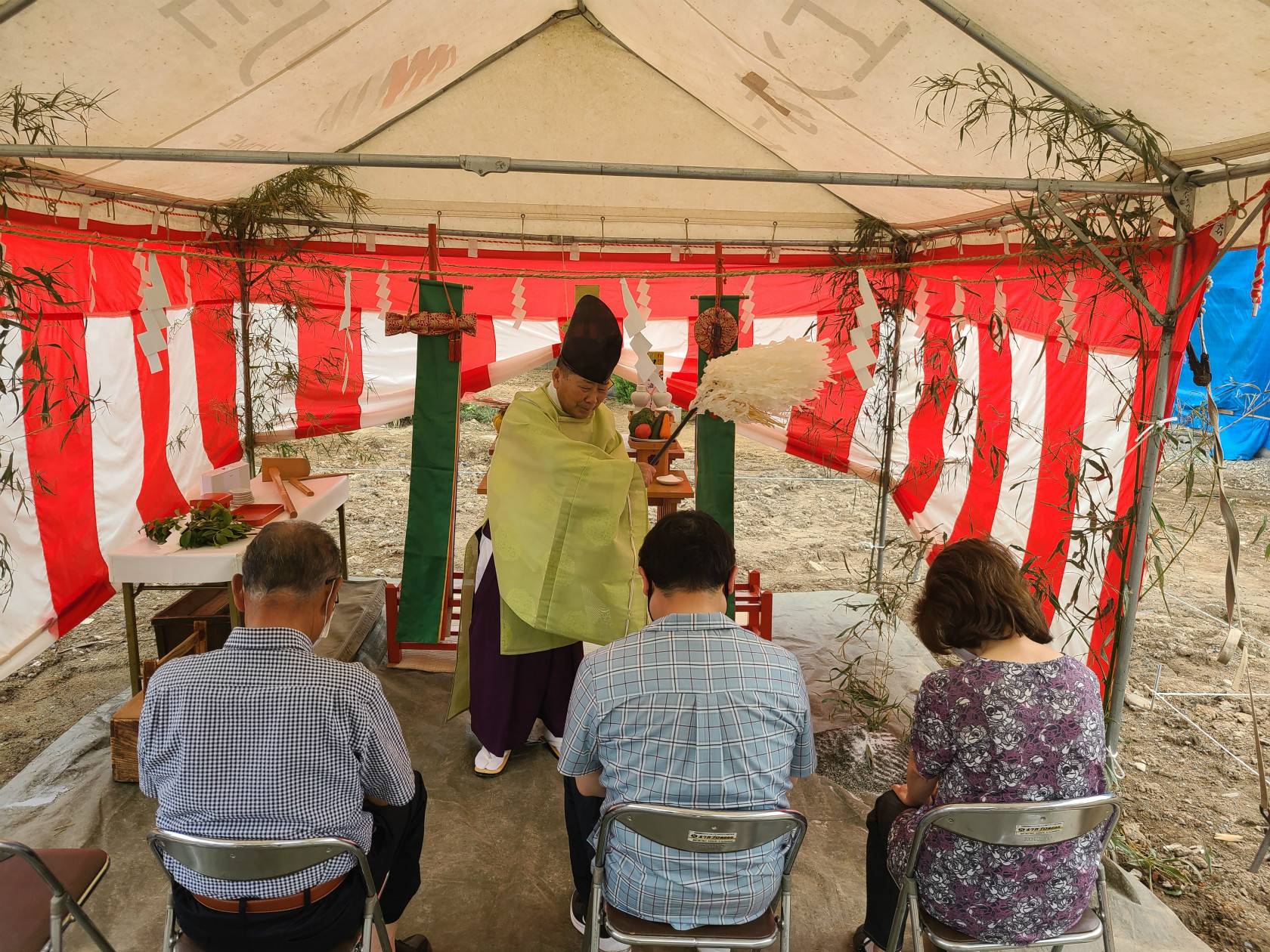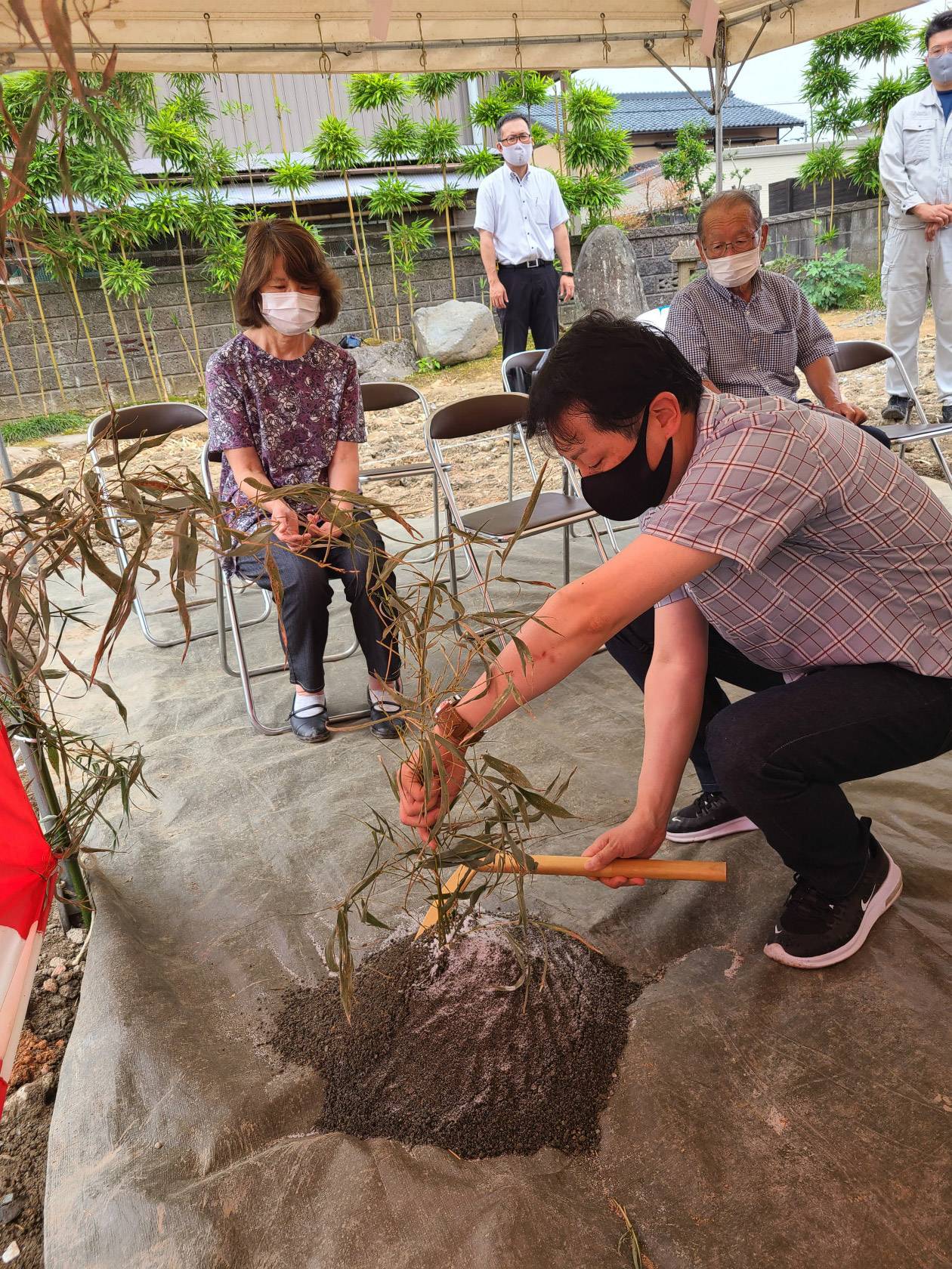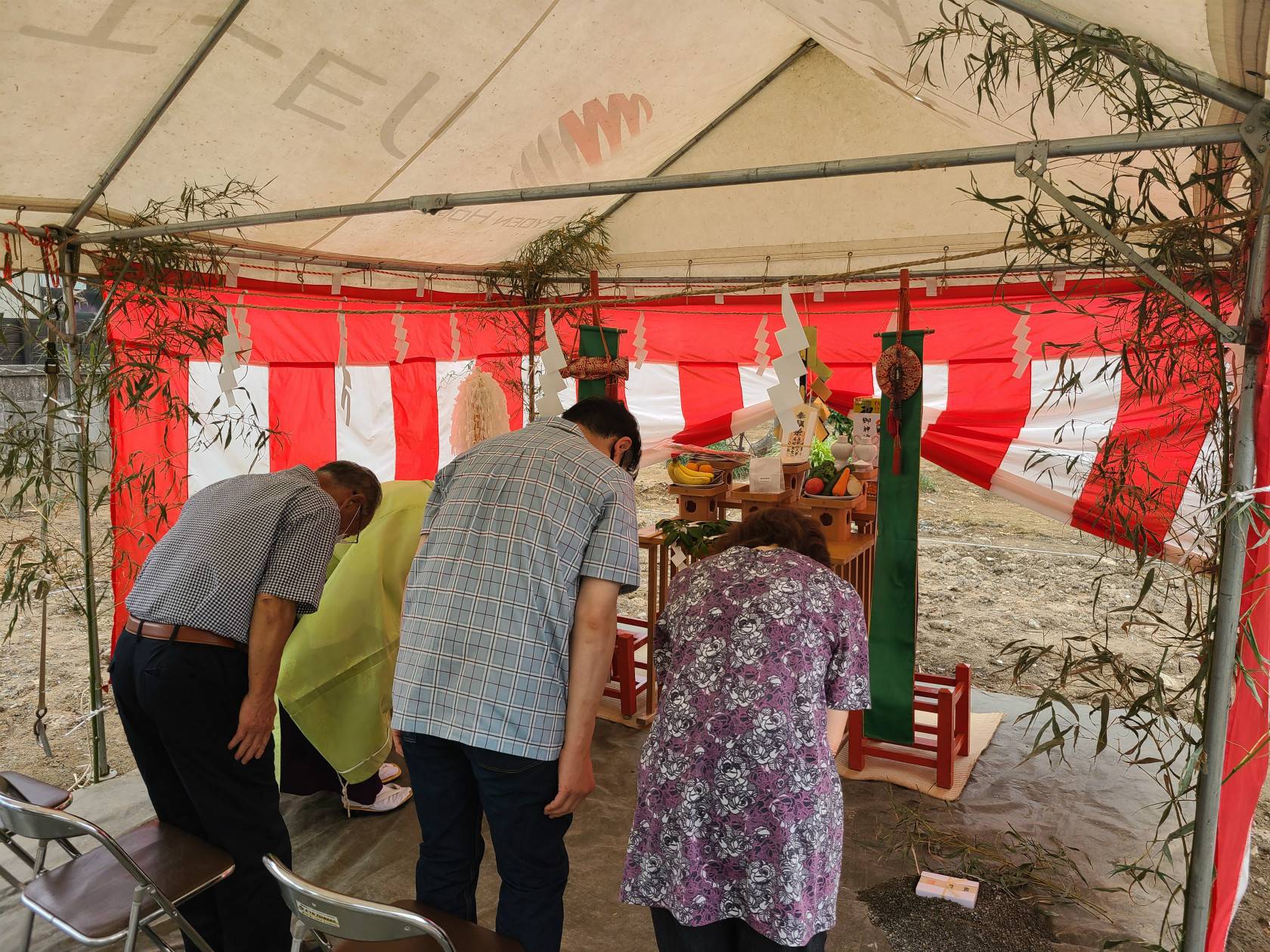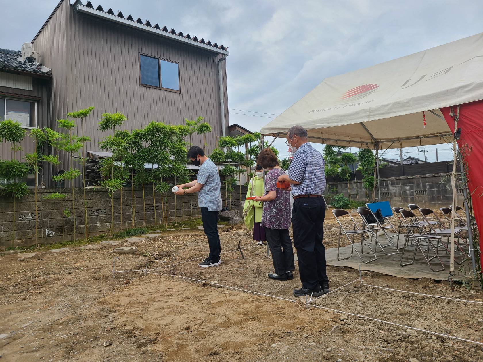お清めが済むとテントに戻り、この土地に初めて手を入れる儀式をします。