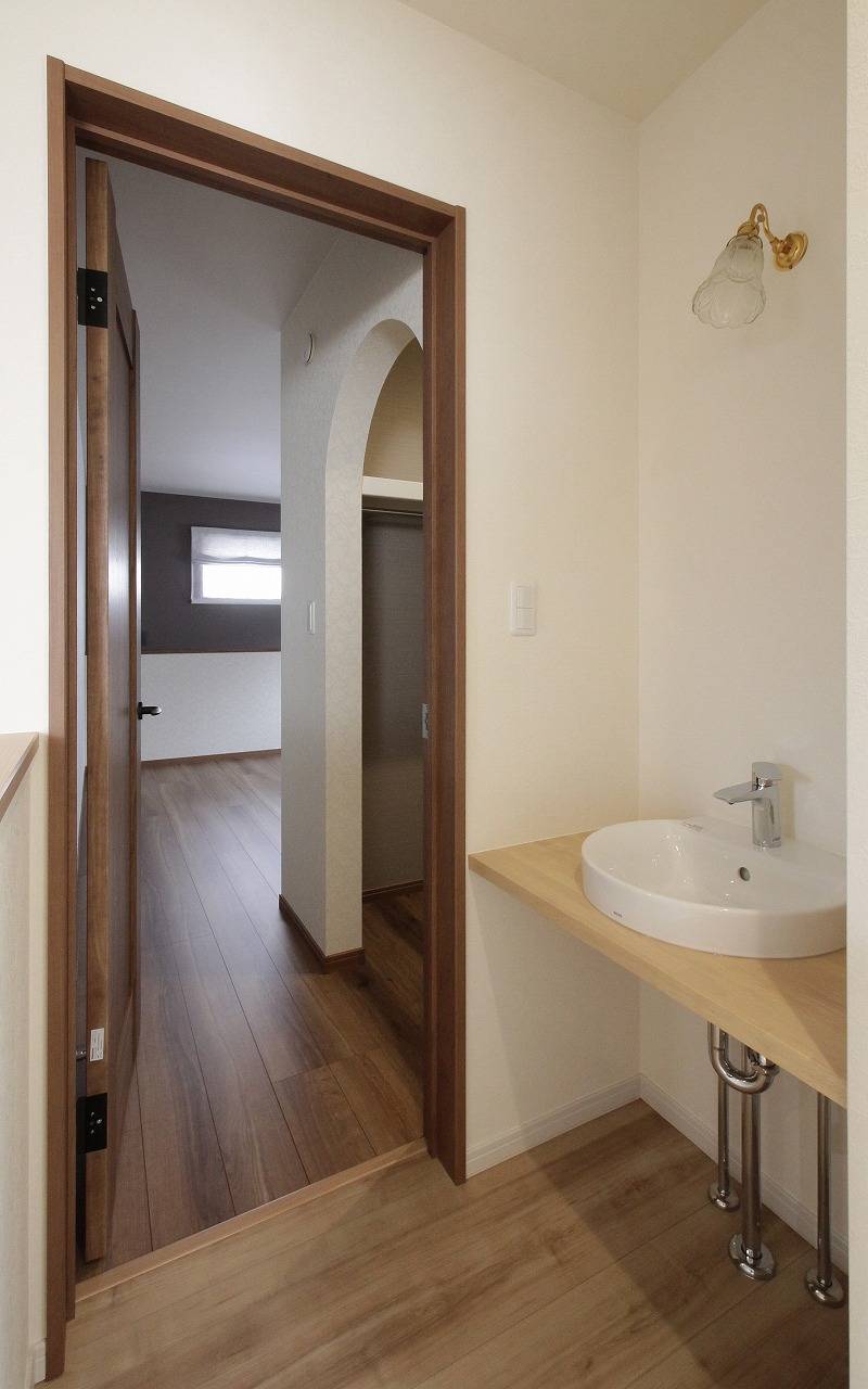 寝室の前にナチュラルな造り付けの手洗い場を設けました。
