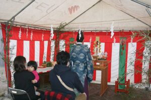 福井市にてSさま邸の地鎮祭でした。 営業スタッフ、設計スタッフ、現場監督が立ち会いました。 まずはこの土地の神様をお呼びする儀式をします。 続いて、建物の建つ四隅をお清めします。 お清めが済むとテントに戻り、この土地に初 […]