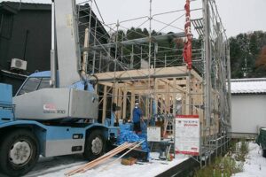 福井市にてKさま邸の建方でした。 営業スタッフ、設計スタッフ、現場監督が立ち会いました。 雪が降る冬空のもと行われました。 安全祈願とKさまの益々のご繁栄を祈願し、お神酒で乾杯をした後、 Kさまには、建物の四隅に塩を盛り […]