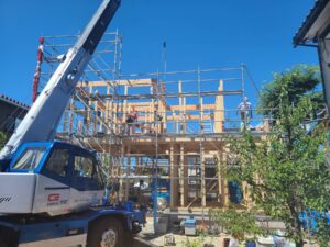 福井市にてK様邸の建方でした。 営業スタッフ、設計スタッフ、現場監督が立ち会いました。 とても暑い日となりましたが、夏らしい良いお天気のもと、行われました。 お施主さまには、建物の四隅に塩を盛り、お清めして頂きました。 […]