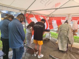 福井市にてN様邸の地鎮祭でした。 営業スタッフ、設計スタッフ、現場監督が立ち会いました。 まずはこの土地の神様をお呼びする儀式をします。 建物の建つ四隅をお清めします。 お清めが済むとテントに戻り、この土地に初めて手を入 […]