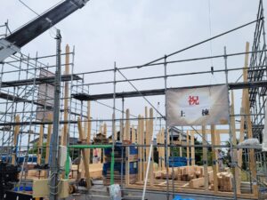 福井市にてT様邸の建方でした。 営業スタッフ、設計スタッフ、現場監督、インテリアコーディネーターが立ち会いました。 お施主さまには、建物の四隅に塩を盛り、お清めして頂きました。 柱や梁を2階の屋根部分まで組み上げたら、職 […]