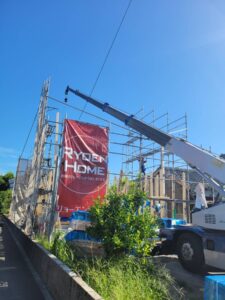 福井市にてN様邸の建方でした。 営業スタッフ、設計スタッフ、現場監督、インテリアコーディネーターが立ち会いました。 お施主さまには、建物の四隅に塩を盛り、お清めして頂きました。 柱や梁を2階の屋根部分まで組み上げたら、職 […]