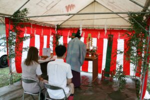大野市にてI様邸の地鎮祭でした。 営業スタッフ、設計スタッフ、現場監督が立ち会いました。 まずはこの土地の神様をお呼びする儀式を行い、建物の建つ四隅をお清めします。 お清めが済むとテントに戻り、この土地に初めて手を入れる […]