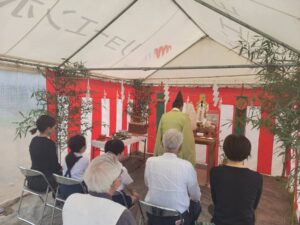 福井市にてY様邸の地鎮祭でした。 営業スタッフ、設計スタッフ、現場監督が立ち会いました。 まずはこの土地の神様をお呼びする儀式を行い、建物の建つ四隅をお清めします。 お清めが済むとテントに戻り、この土地に初めて手を入れる […]