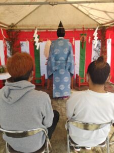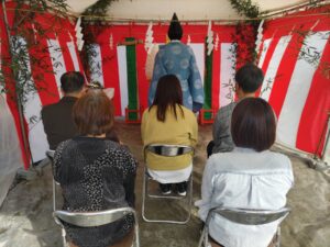 越前市にてS様邸の地鎮祭でした。 営業スタッフ、設計スタッフ、現場監督が立ち会いました。 まずはこの土地の神様をお呼びする儀式を行い、建物の建つ四隅をお清めします。 お清めが済むとテントに戻り、この土地に初めて手を入れる […]