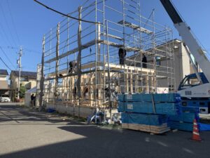 大野市にてI様邸の建方でした。 営業スタッフ、設計スタッフ、現場監督、インテリアコーディネーターが立ち会いました。 お施主さまには、建物の四隅に塩を盛り、お清めして頂きました。 柱や梁を2階の屋根部分まで組み上げたら、職 […]