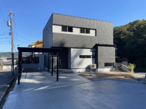 グレーの濃淡でスタイリッシュな箱型の外観。 シューズクロークがある玄関は、いつもスッキリとしてお客様をお迎えできます。 約17帖のLDKにたたみコーナーがあり、家族がくつろぐスペースとなっています。 洗面・バス・サンルー […]