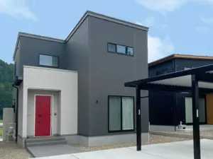 グレーの外壁と赤色のドアの組み合わせが印象的な外観。 大容量のシューズクロークが備わったL字型の玄関。 約19帖のLDKには納戸もあり、片付けやすく、 いつもスッキリと生活することができます。 洗面・バス・サンルームなど […]