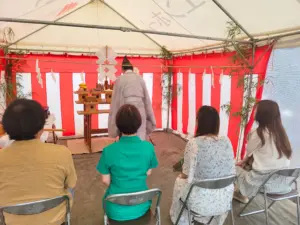 福井市にてN様邸の地鎮祭でした。 まずはこの土地の神様をお呼びする儀式を行い、建物の建つ四隅をお清めします。 お清めが済むとテントに戻り、この土地に初めて手を入れる儀式をします。 そして、神前に玉串を奉納していただき拝礼 […]