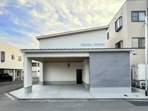グレーの外壁、横長の窓と木目がアクセントになったスタイリッシュな外観。 壁で囲まれた中庭とつながるアイランドキッチンを中心としたLDK。 中庭スペースはプライバシーが確保された第2のリビング。アウトドア好きなご家族の憩い […]