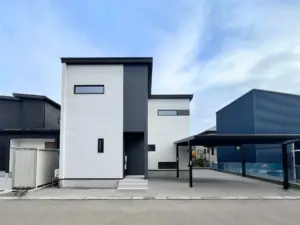 白とグレーのツートンカラーの外壁、明るさをとりやすいL字型の外観。 キッチンからの目線の先に3帖の畳コーナーがあり、お子様も過ごしやすい空間になっている約18帖のLDK。 シューズクロークの入り口はRの垂れ壁に。スモーク […]