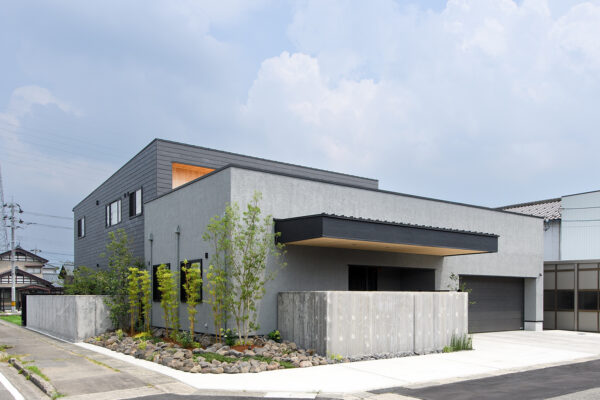 シックなグレーの外壁にクリーム色のタイルがアクセントになった外観です。 キッチンの下がり天井が特徴的なLDK。キッチン横にはスタディコーナーがあります。 リビングに隣接する畳コーナーから中庭に […]