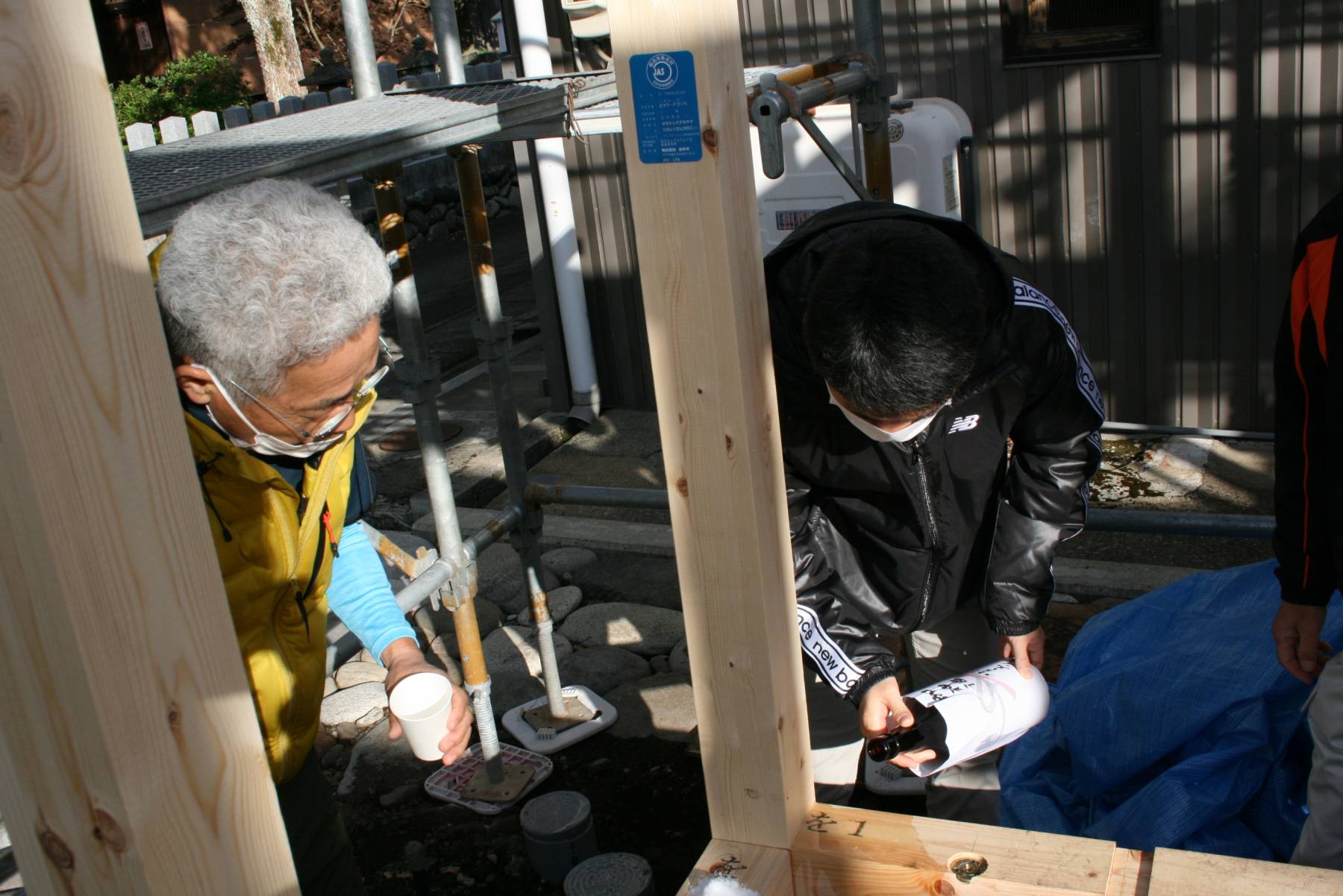お施主さまには、建物の四隅に塩を盛り、お清めして頂きました。