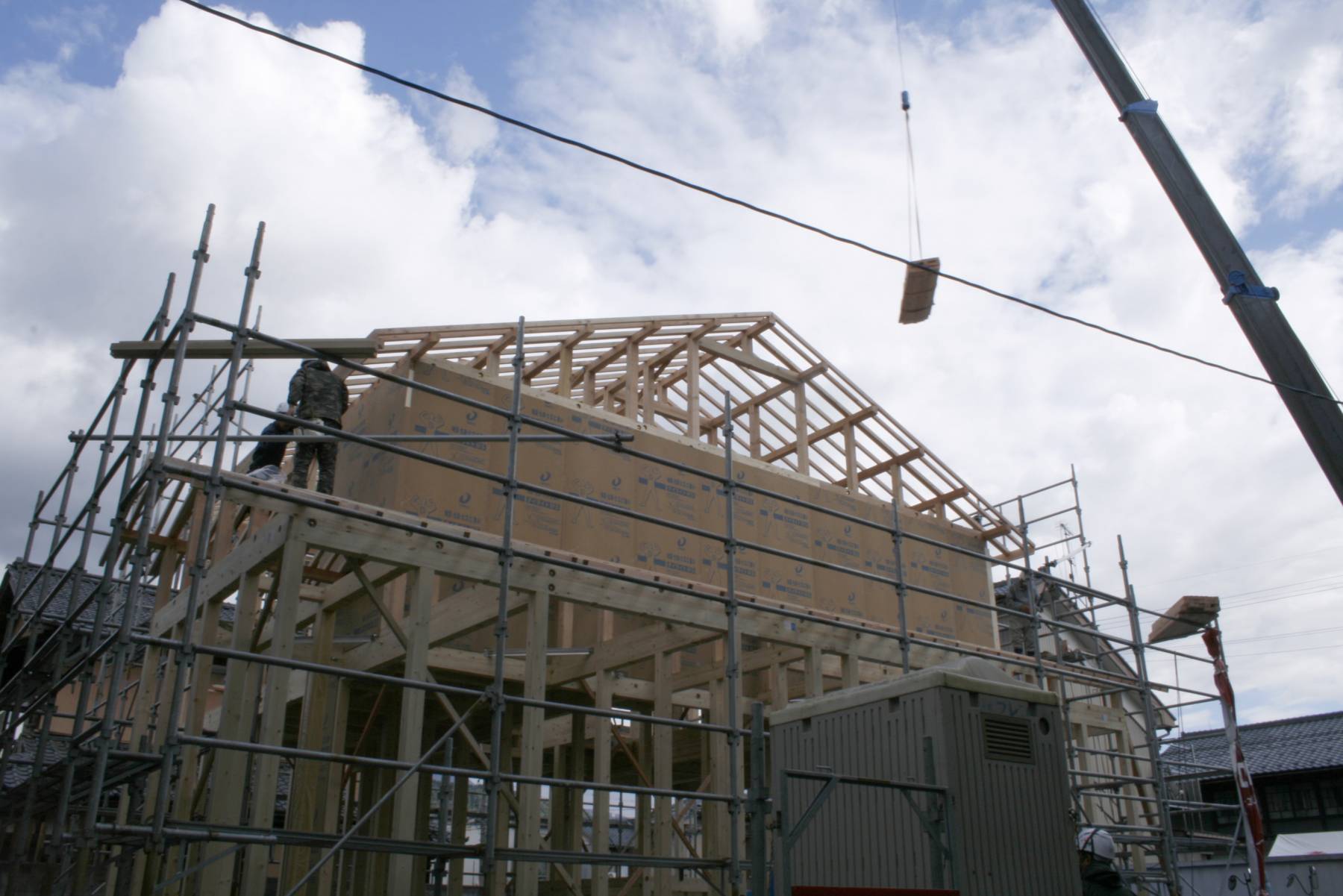 屋根が掛かるといよいよ建物のかたちが見えてきます。