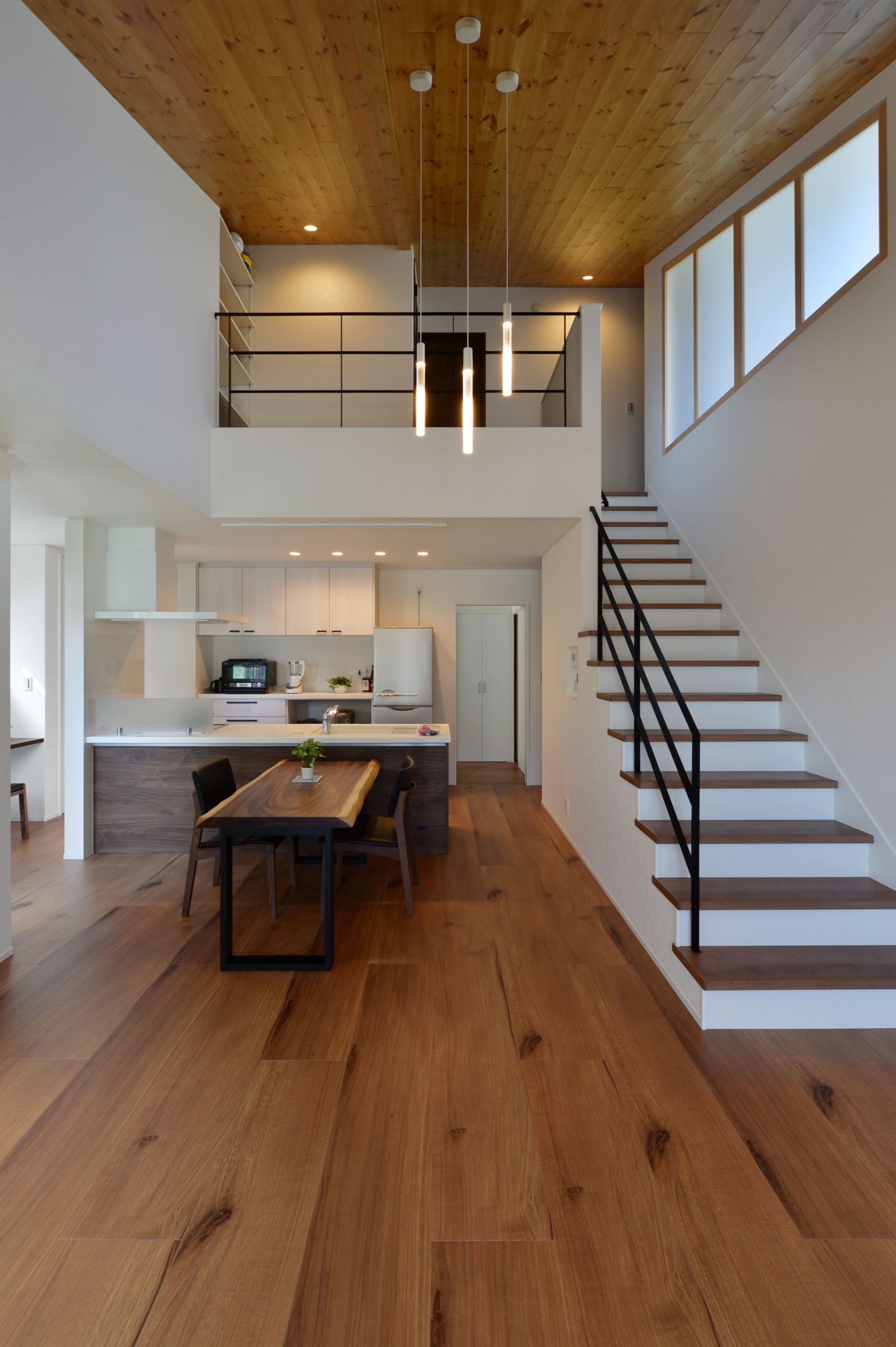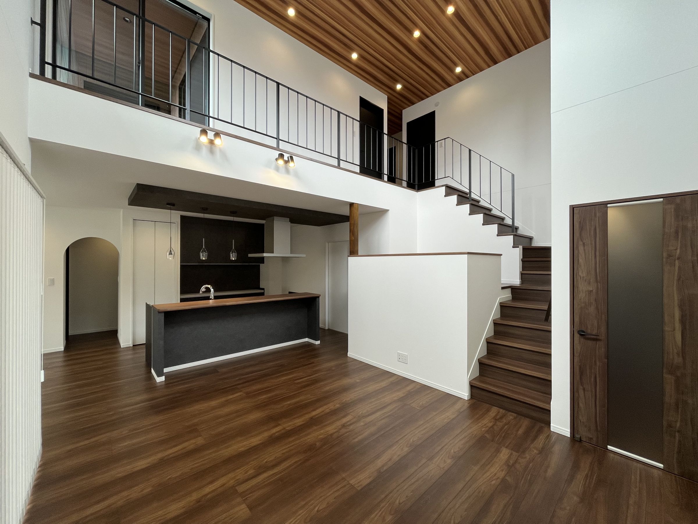 勾配天井にしたり、インパクトのある照明を設置したり、スキップフロア、リビング階段を設けたり、、、