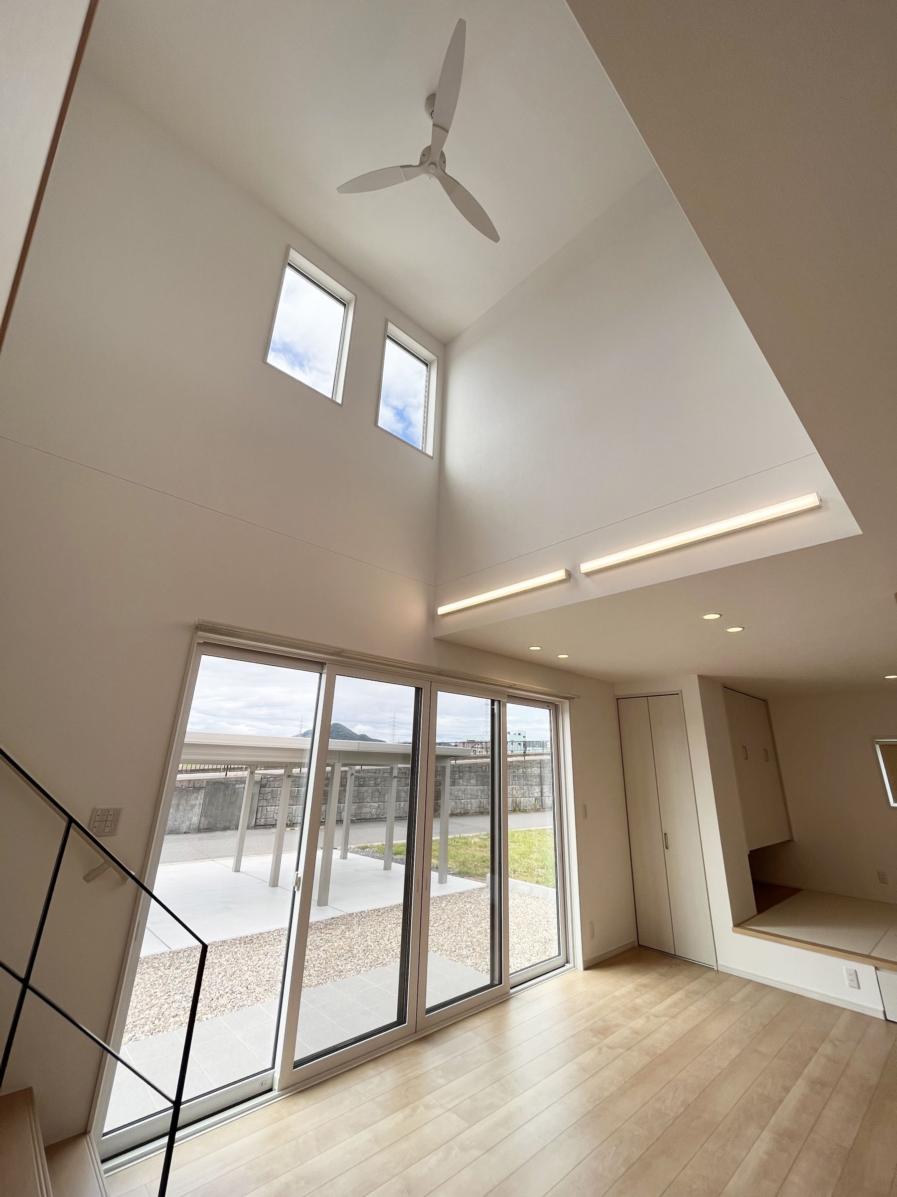 さらに、天井にシーリングファンを設置すれば、より空気を循環させやすくなり、快適な空間となります。