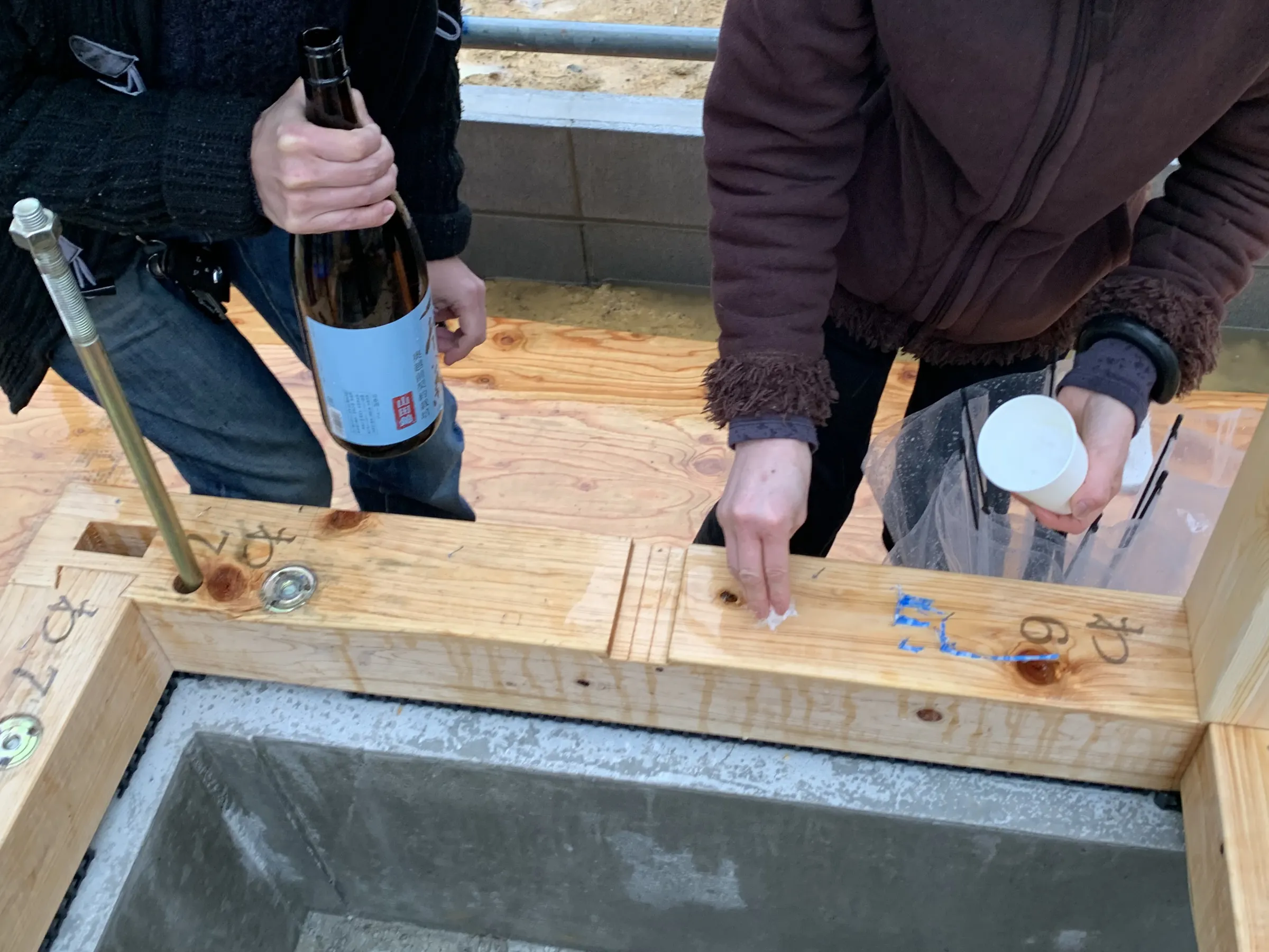 前日に比べて気温もぐっと下がる中、テント内で暖をとってから建方はじまりました!