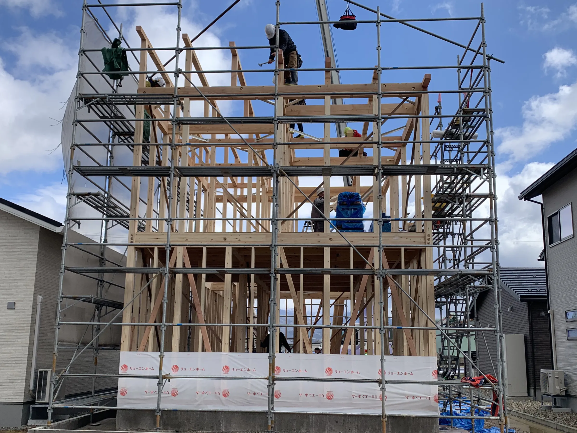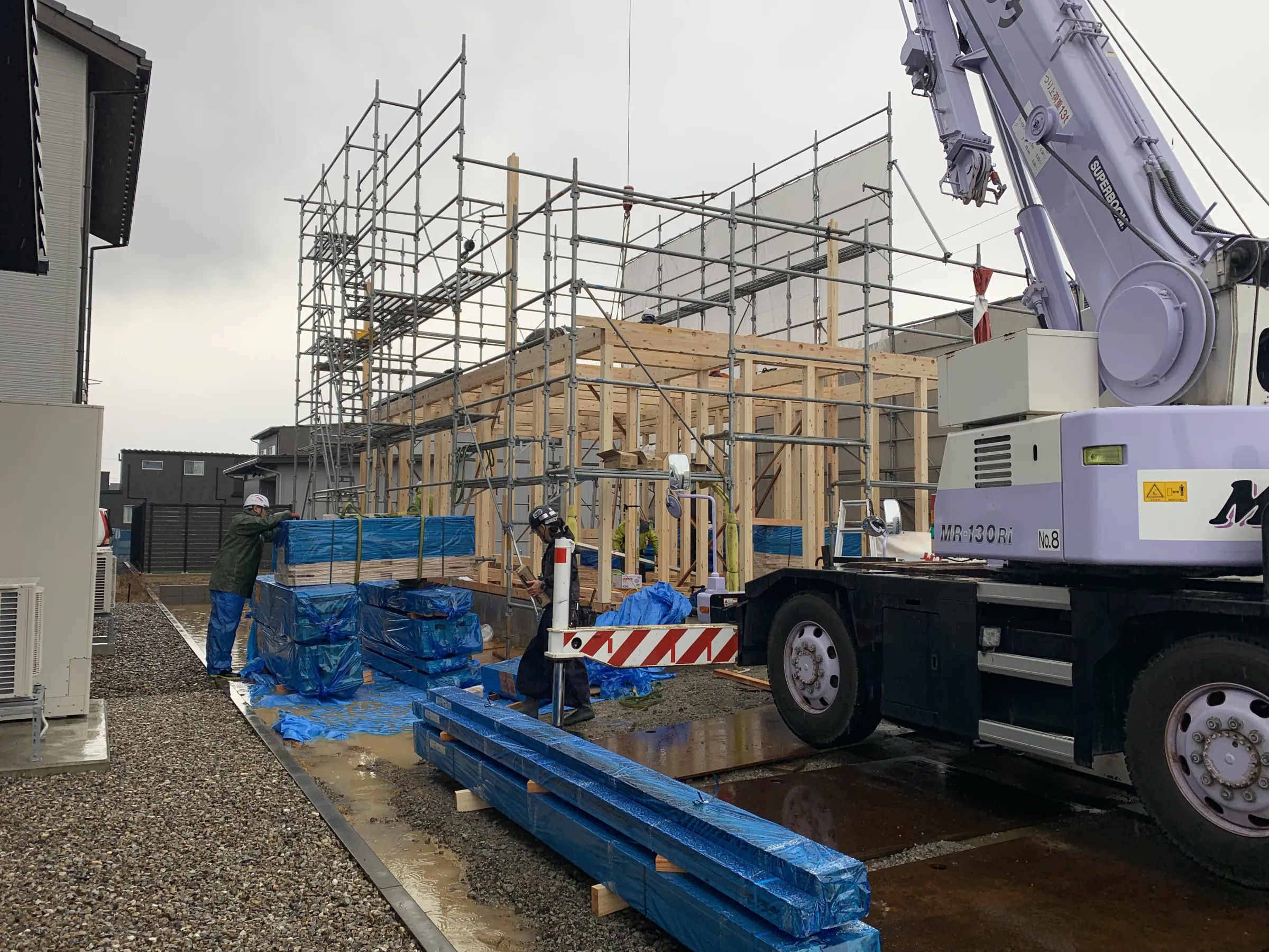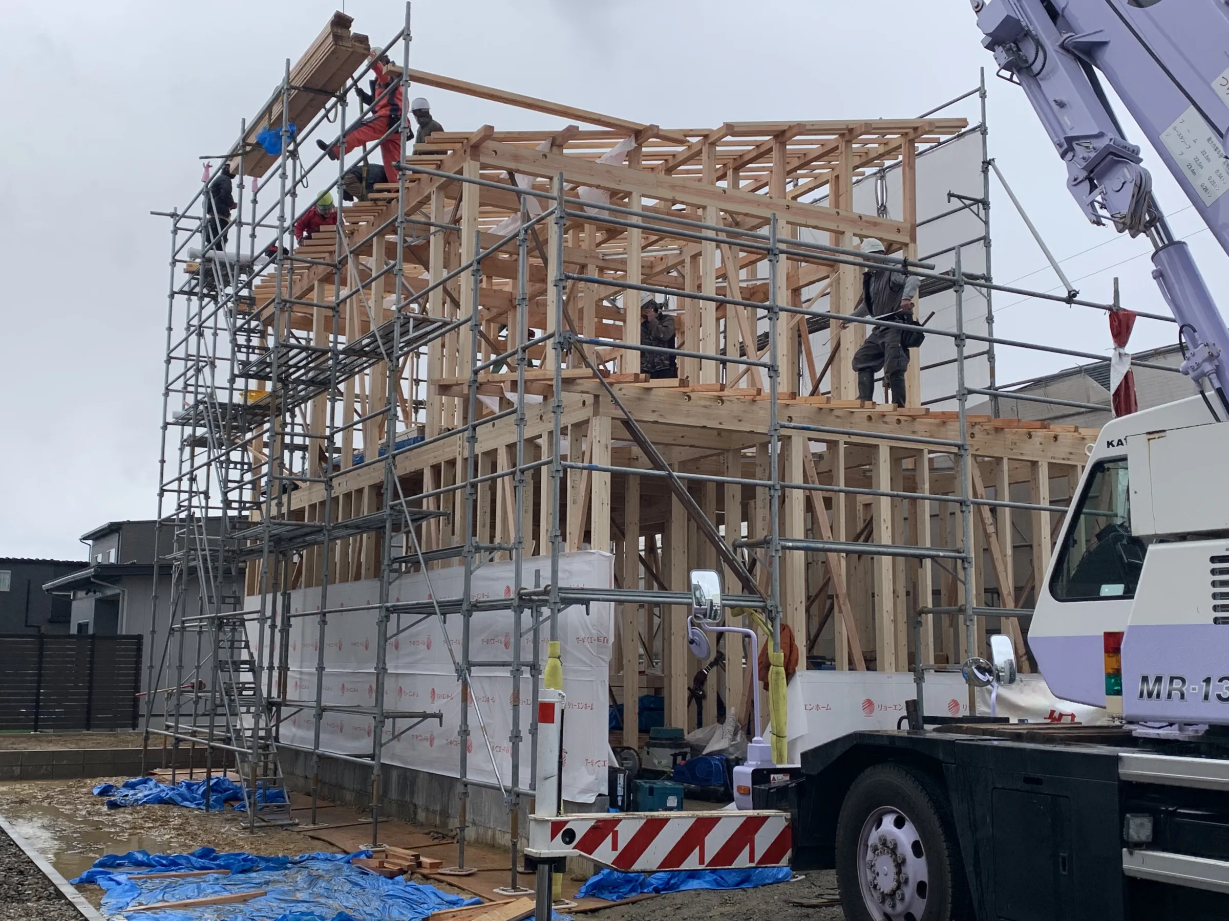 活気ある中、無事作業もスムーズに進み、順調に建方が終了いたしました。