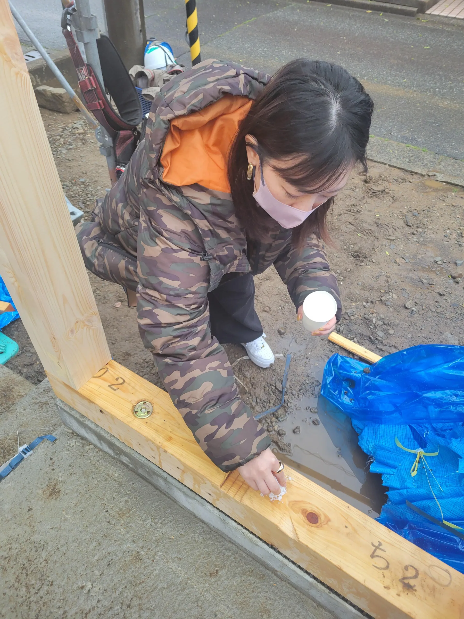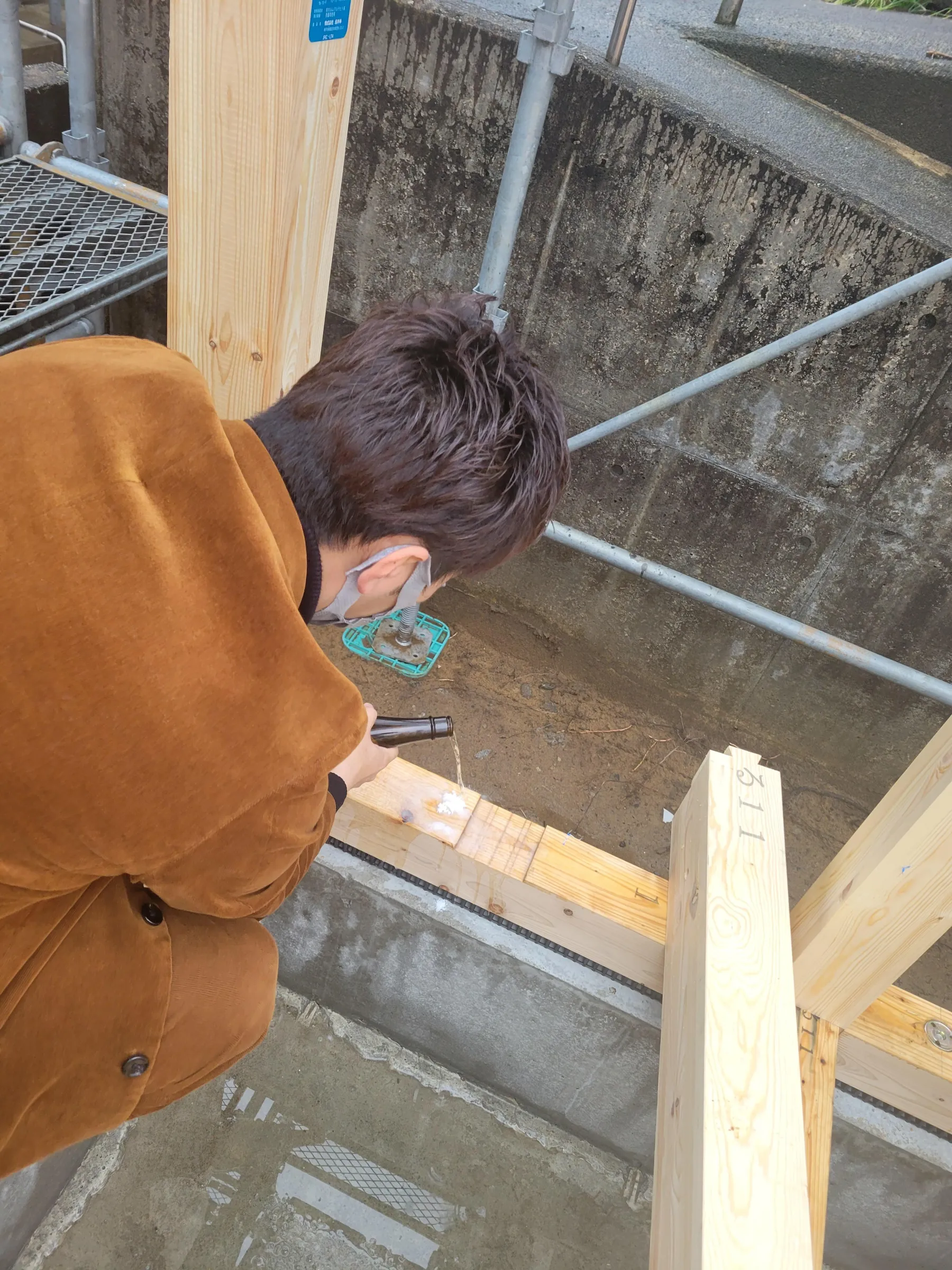 春の陽気から一転、冬の寒さに逆戻りした日となりましたが、テント内で暖をとりながら建方がはじまりました!