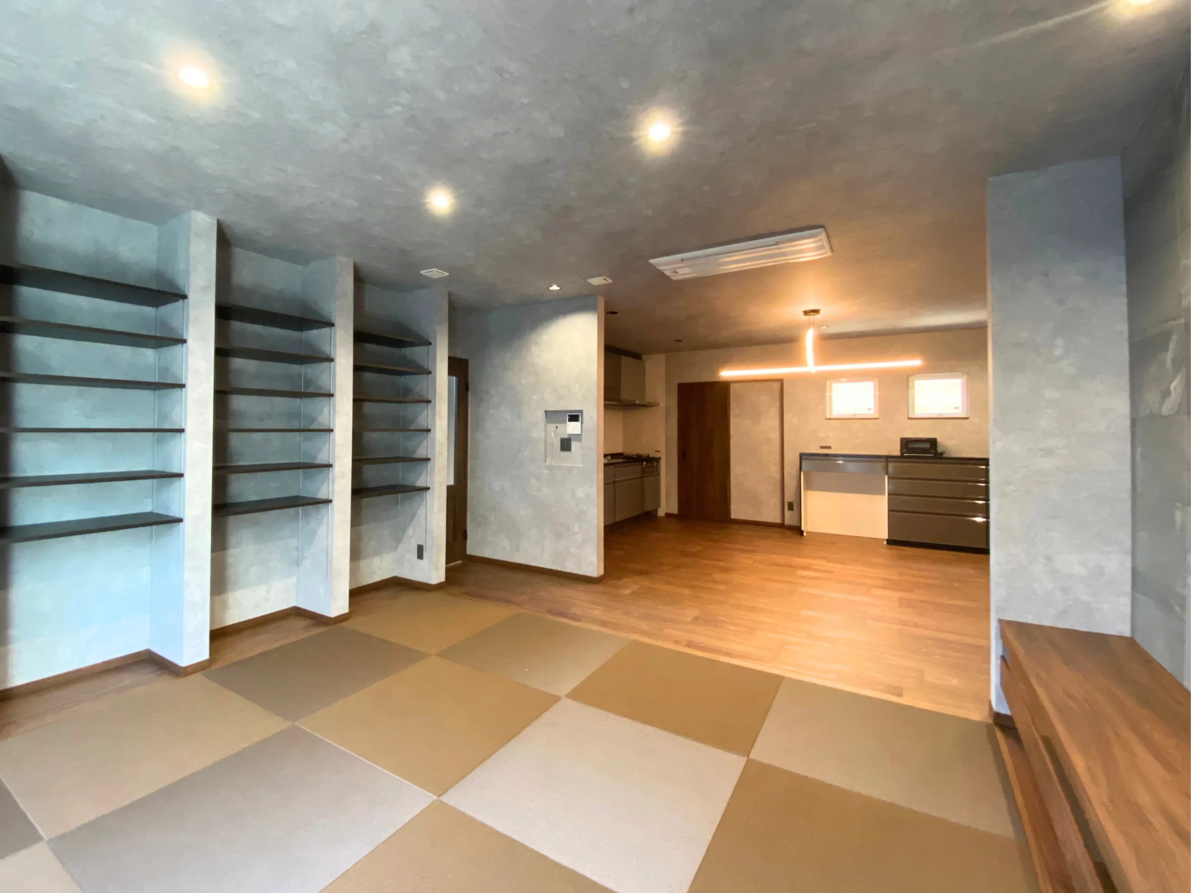 広々とした大空間のLDKにはフラットな畳スペース。