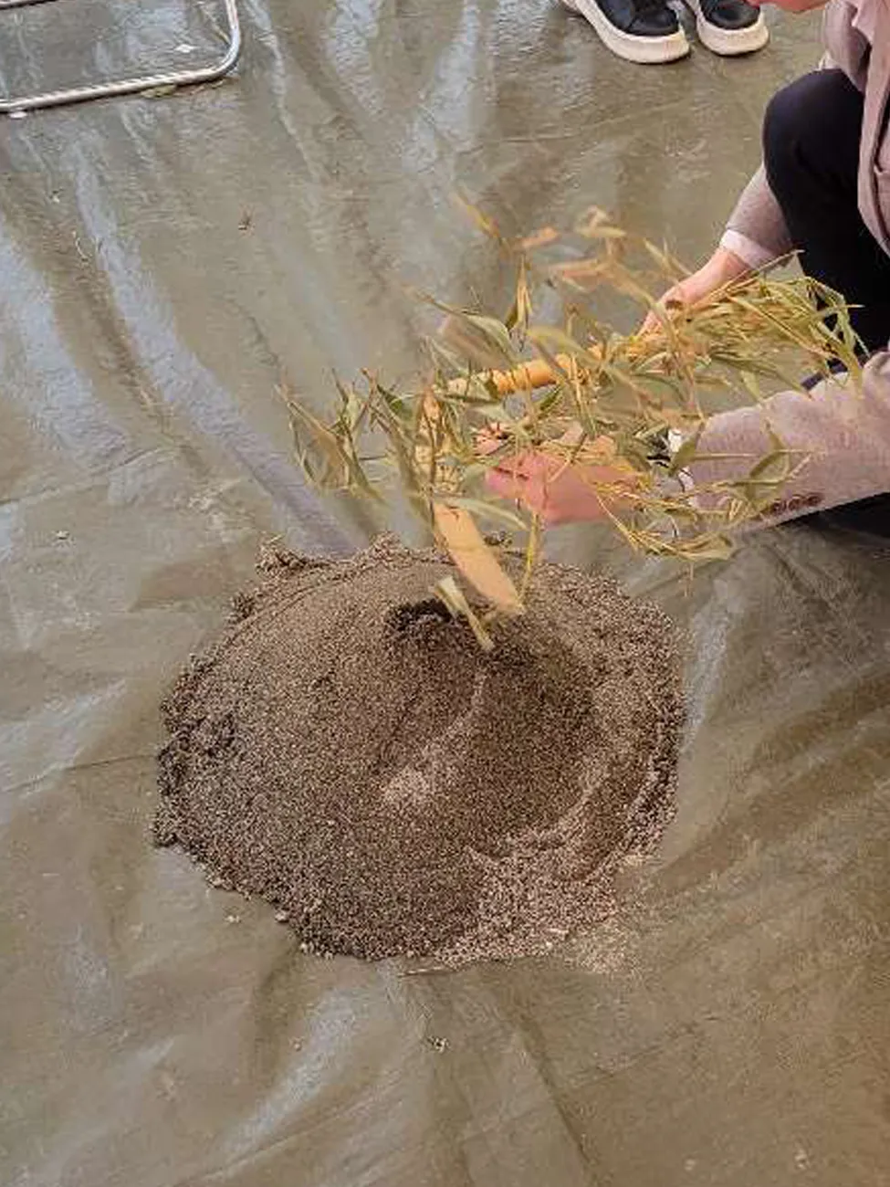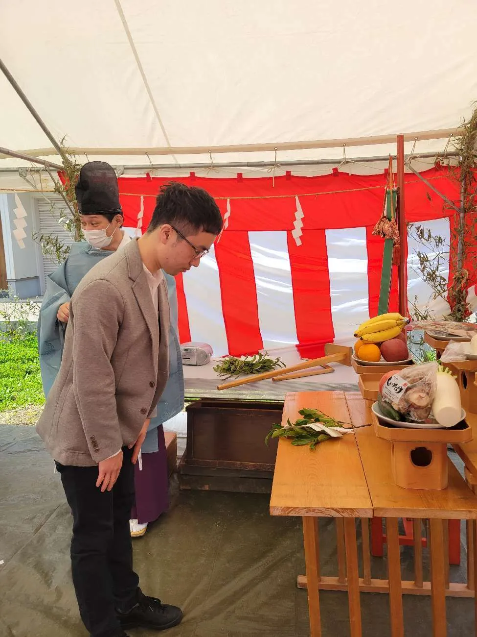 お清めが済むとテントに戻り、この土地に初めて手を入れる儀式をします。