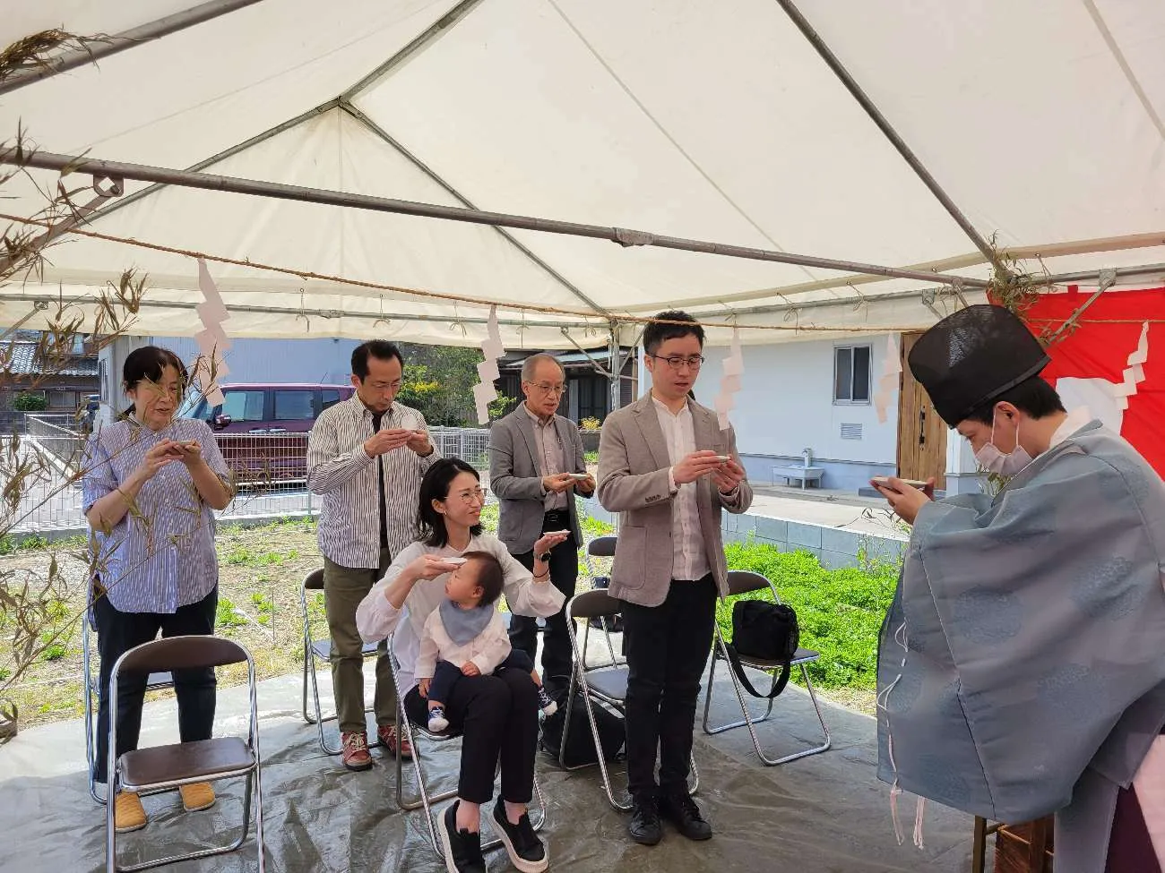 最後に皆さんでお神酒を頂き、地鎮祭の儀式が滞りなく終了しました。