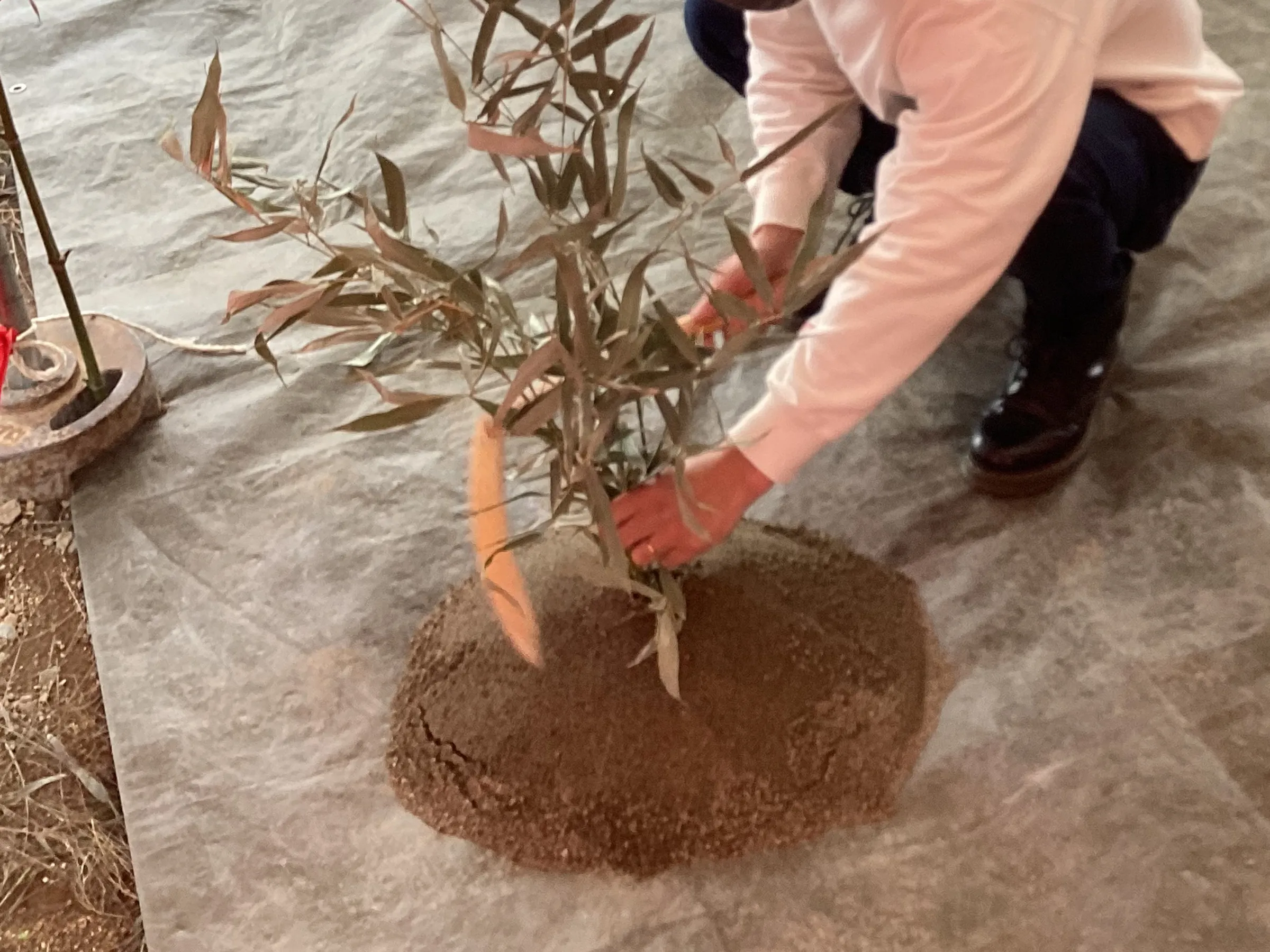 お清めが済むとテントに戻り、この土地に初めて手を入れる儀式をします。