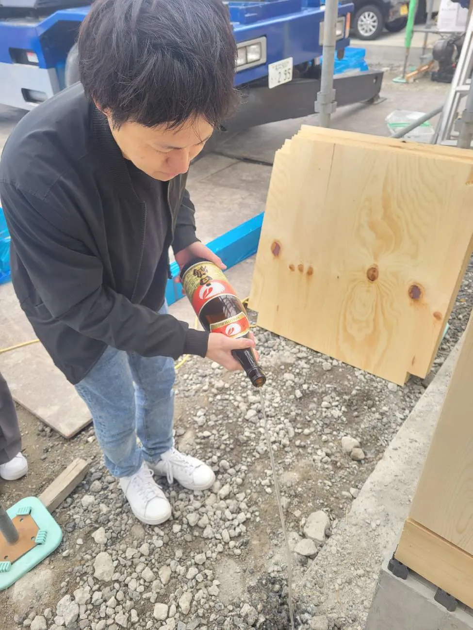お施主さまには、建物の四隅に塩を盛り、お清めして頂きました。