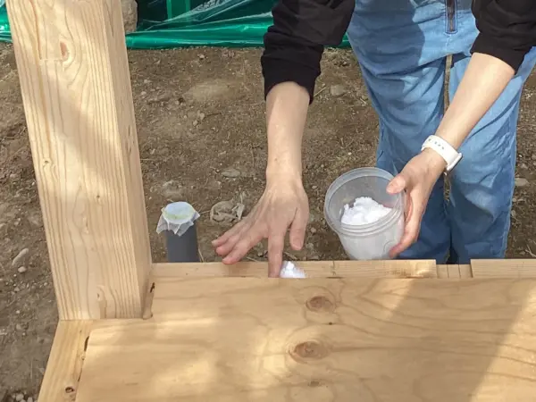お施主さまには、建物の四隅に塩を盛り、お清めして頂きました。
