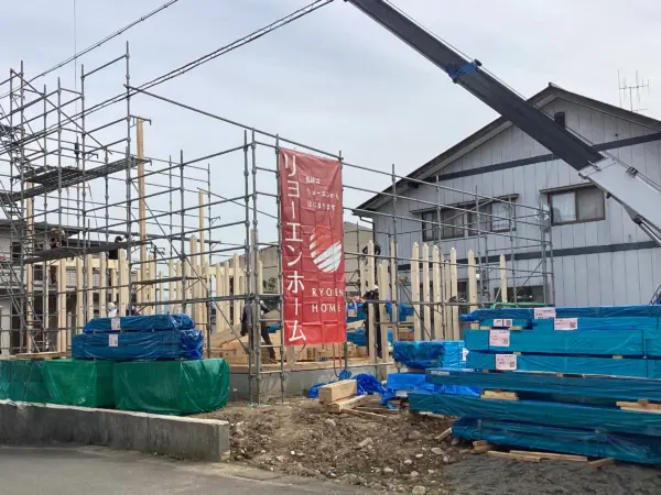 大野市にてH様邸の建方でした。