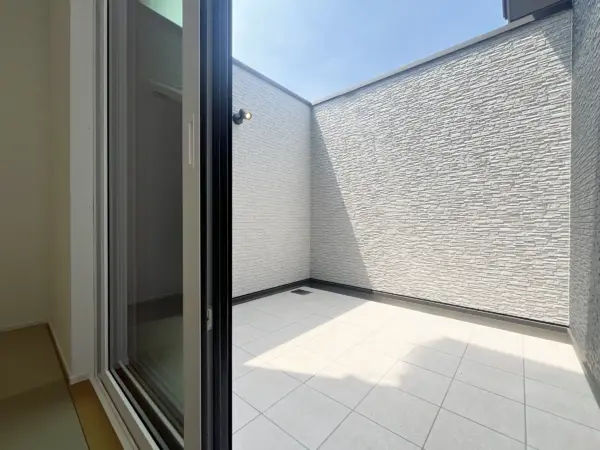 壁に囲まれることでプライバシーが守られる中庭テラス。第2のリビングとして活用できます。