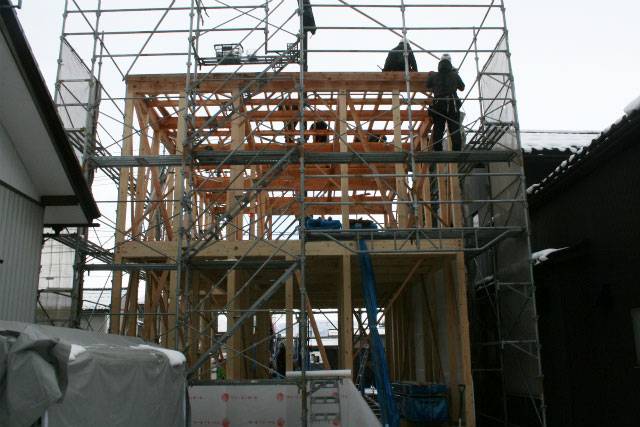 福井市にてKさま邸の建方でした。