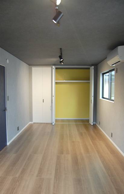 子ども部屋は、将来は仕切って2部屋に出来るように、ドアが2つ。建具やクロスは黄色やブルーでポップな雰囲気のお部屋になっています。
