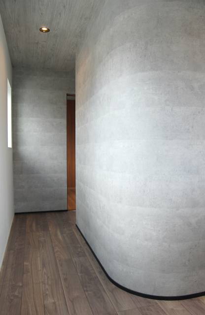 2階ホールはアールの壁になっています。角がないので、お子さまも安心です。