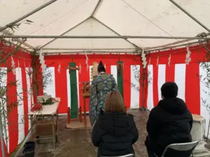 福井市にてO様邸の地鎮祭でした。 営業スタッフ、設計スタッフ、現場監督が立ち会いました。 まずはこの土地の神様をお呼びする儀式を行い、建物の建つ四隅をお清めします。 お清めが済むとテントに戻り、この土地に初めて手を入れる […]