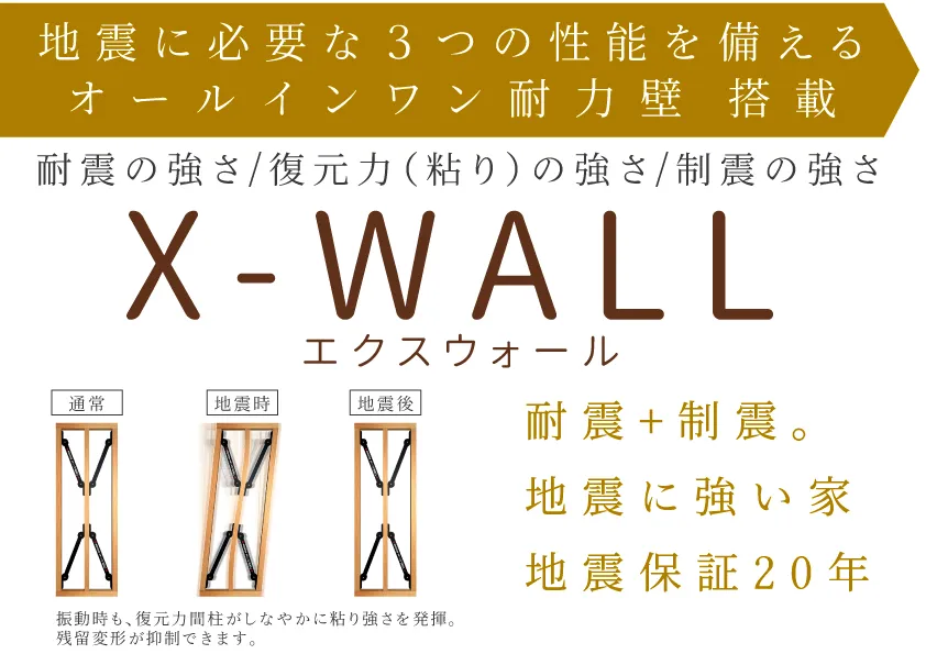 - ●耐震+制震装置「X-WALL」搭載で地震にも安心